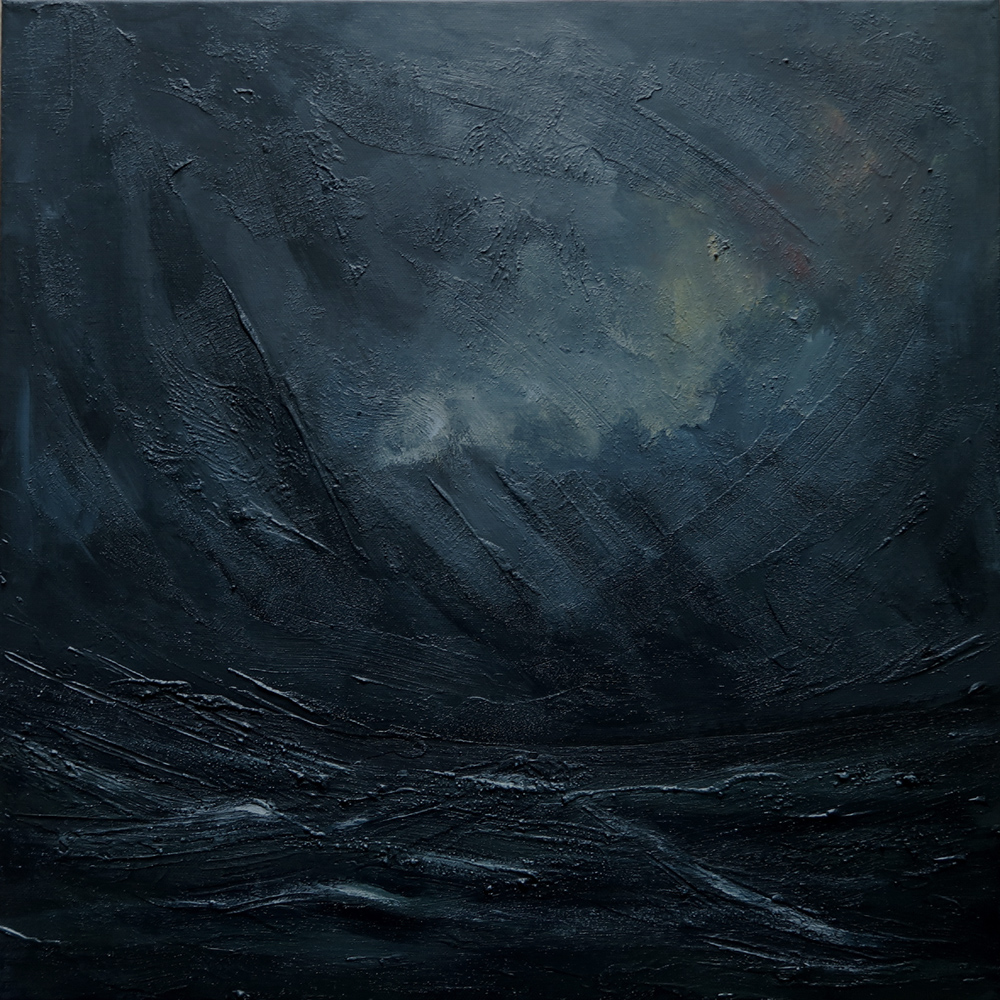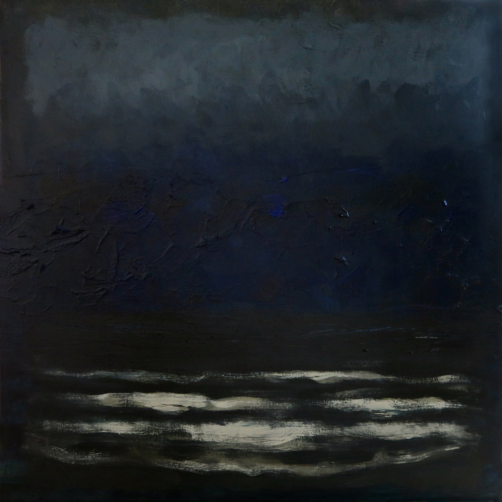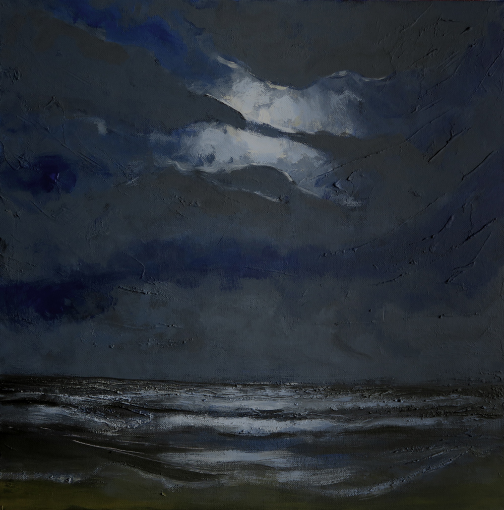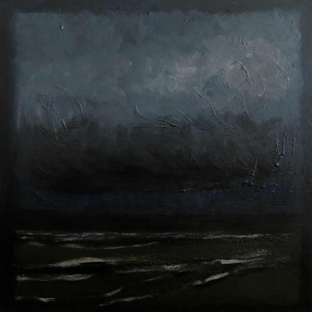Donkere stem boven de zee, zeegezicht, acrylverf op doek, 50 x 50 cmDark voice over the sea, seascape, acrylic on canvas