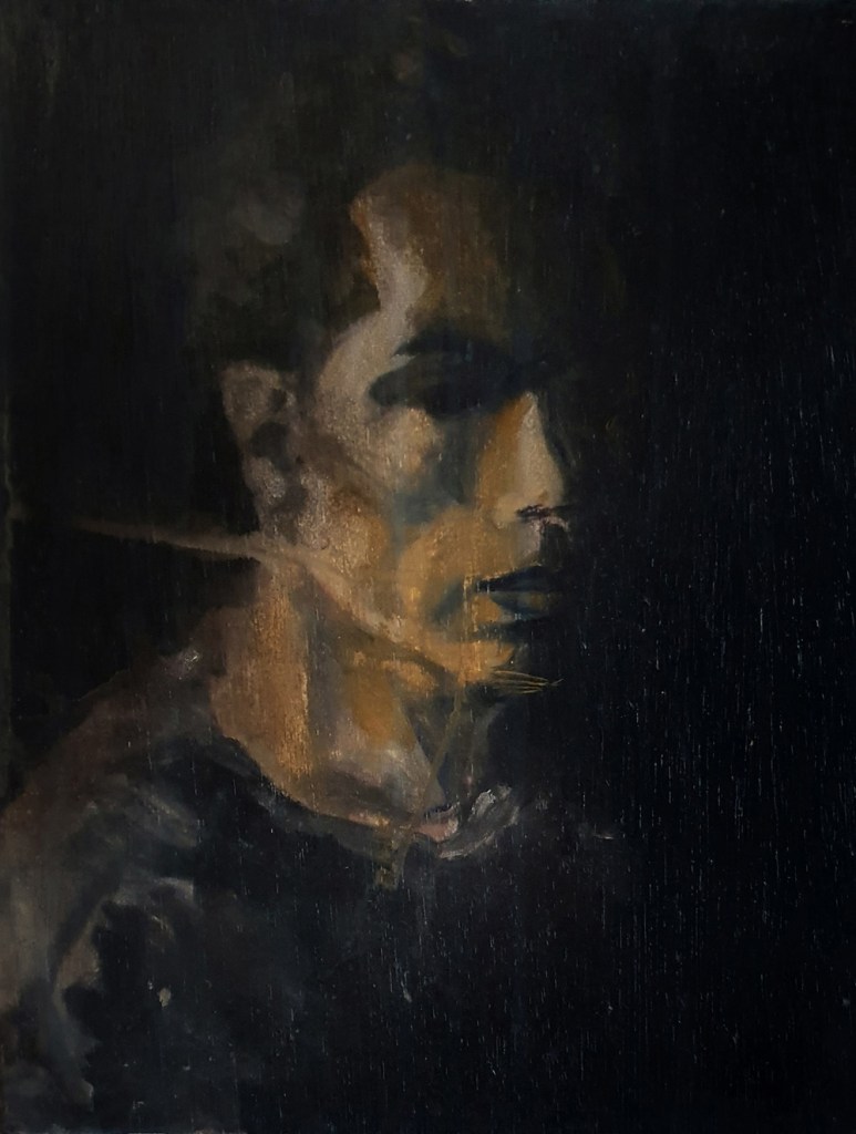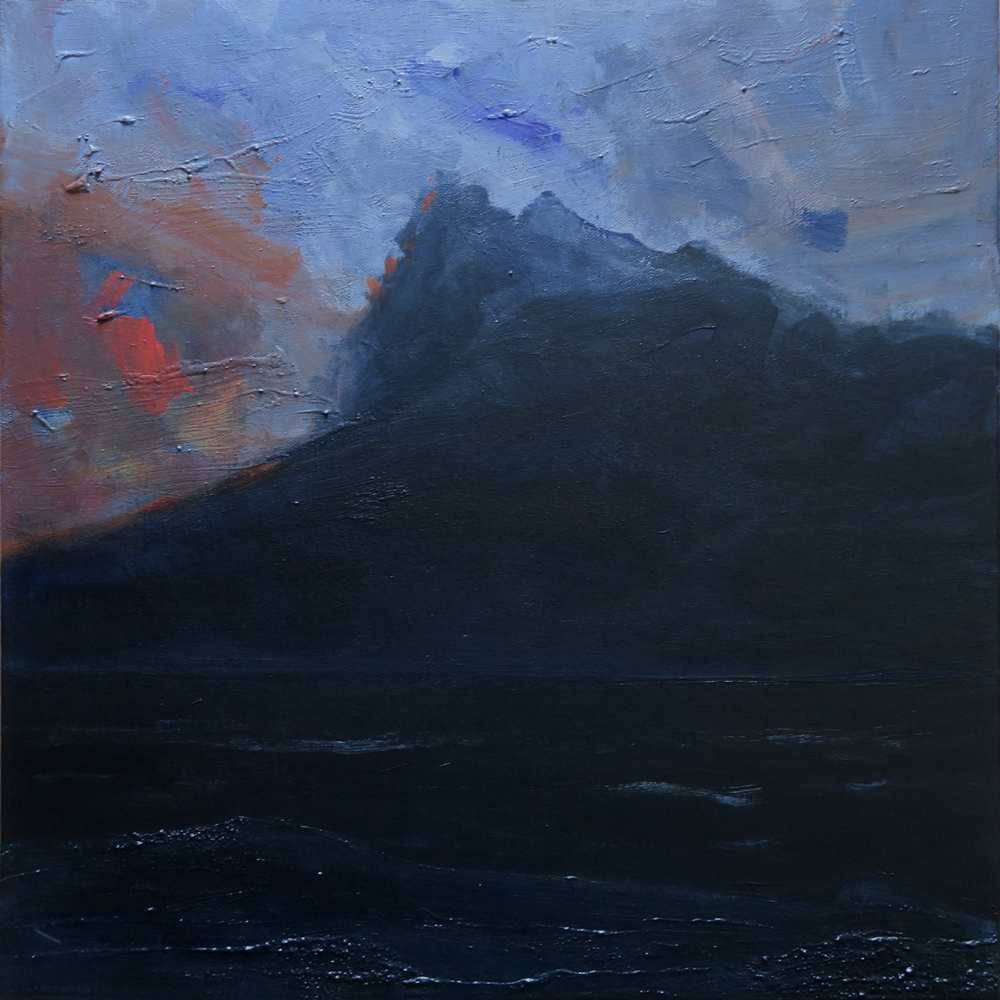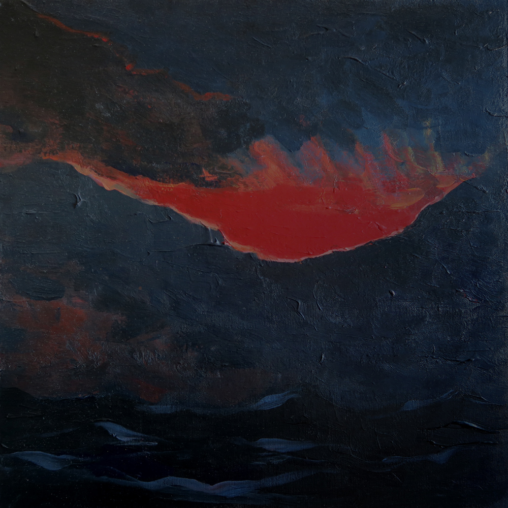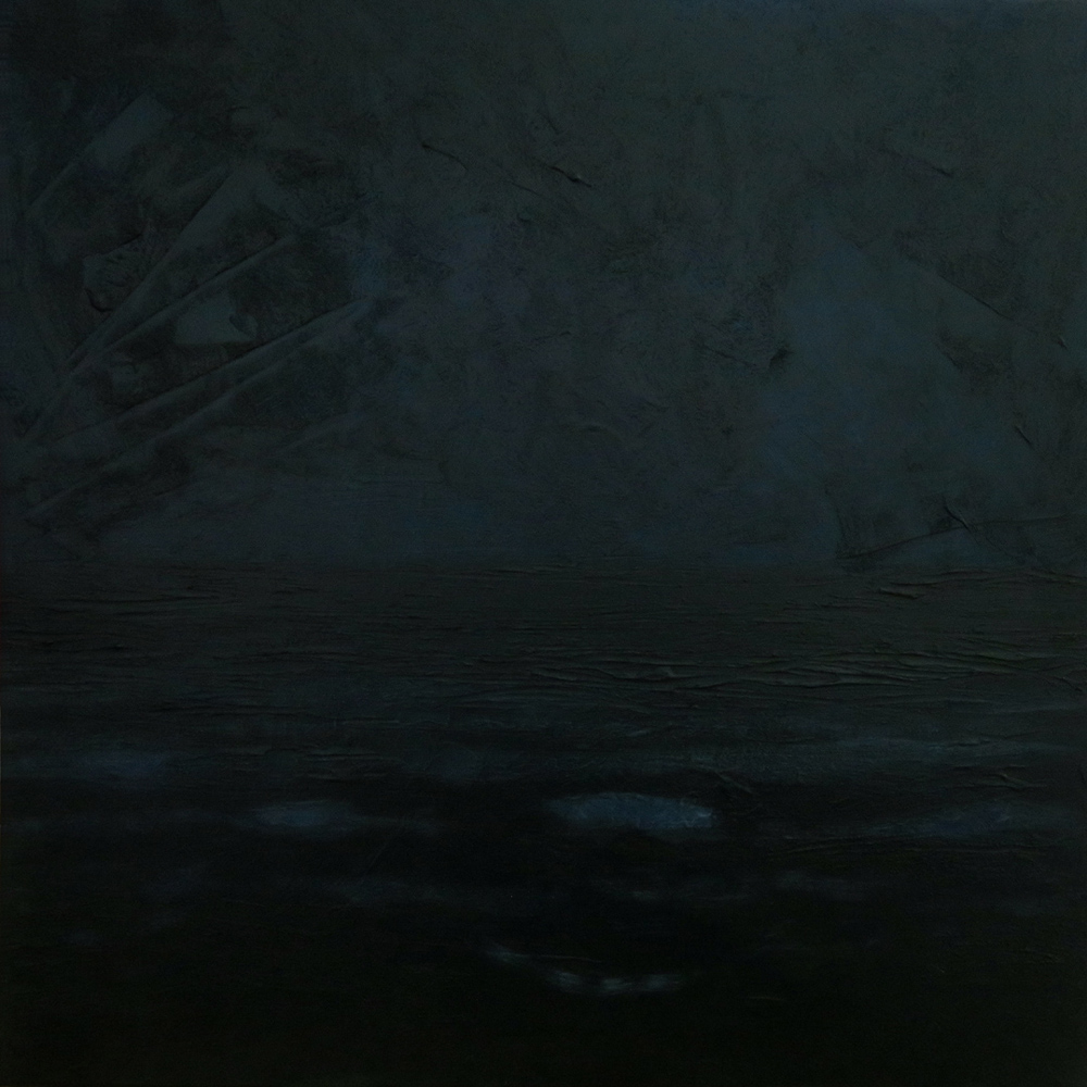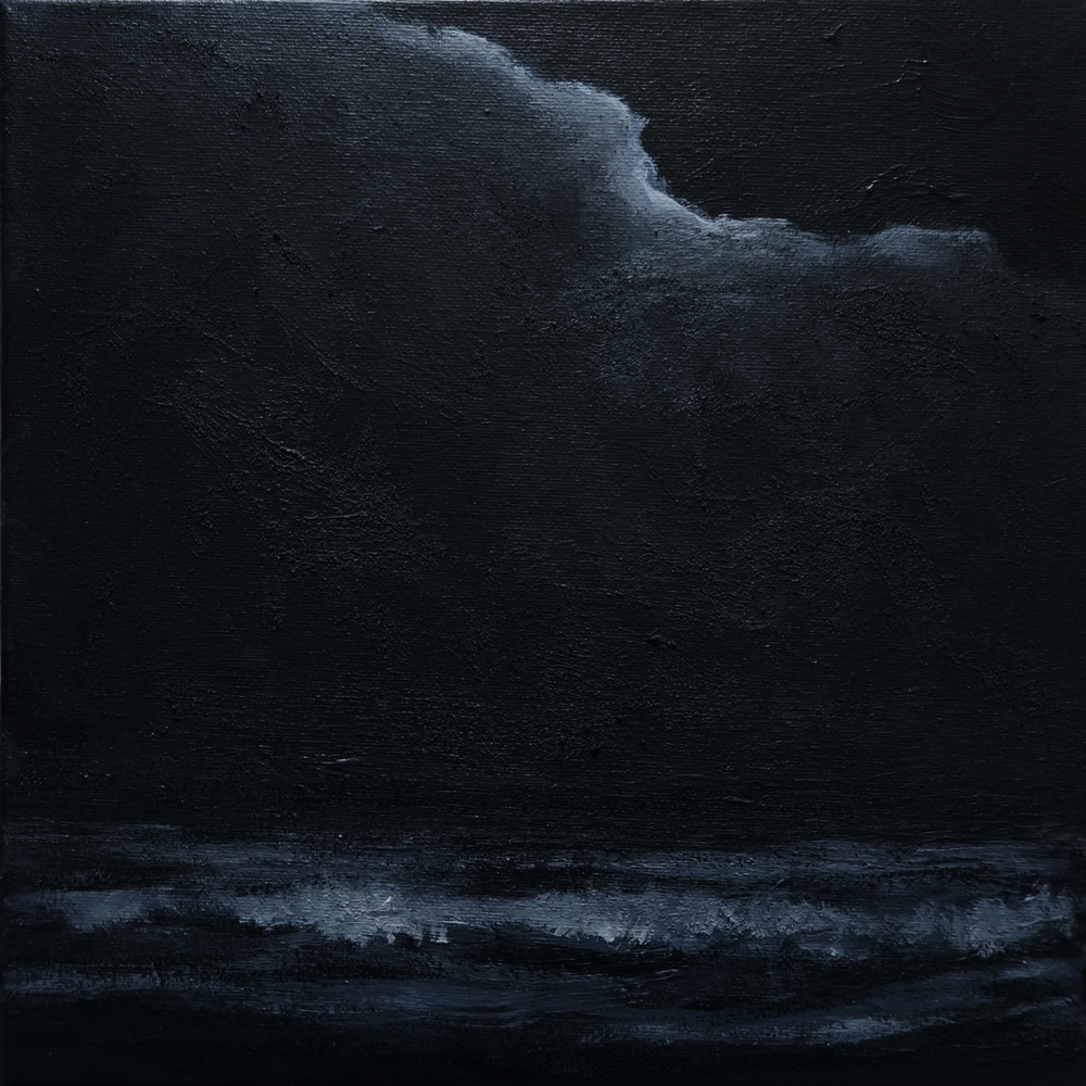 Donkere stem boven de zee, zeegezicht, acrylverf op doek, 50 x 50 cmDark voice over the sea, seascape, acrylic on canvas